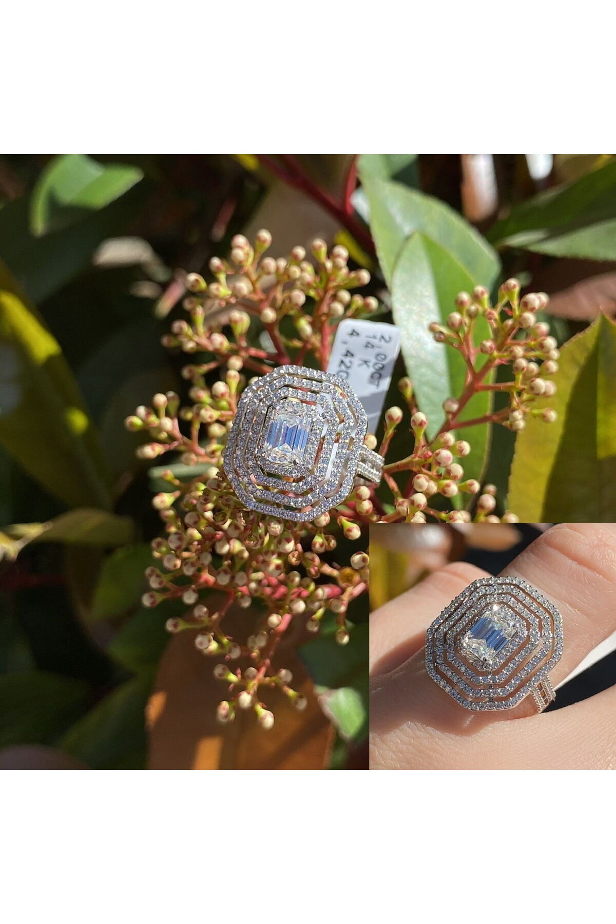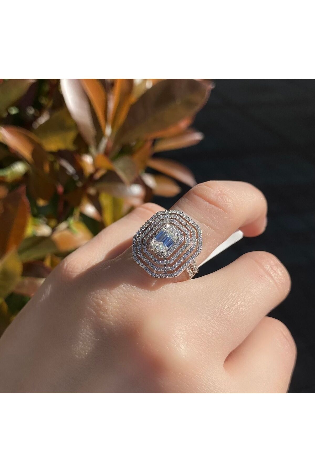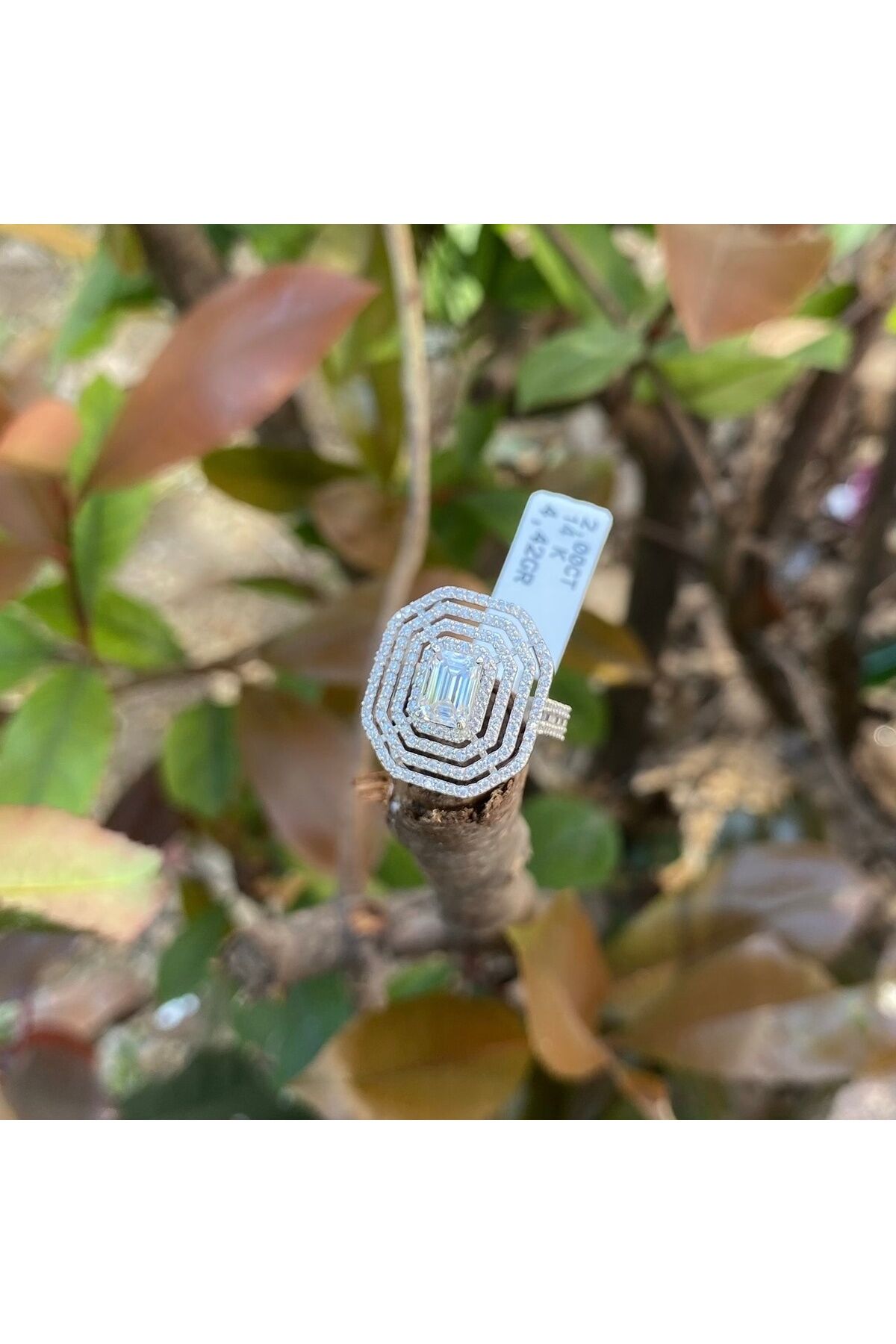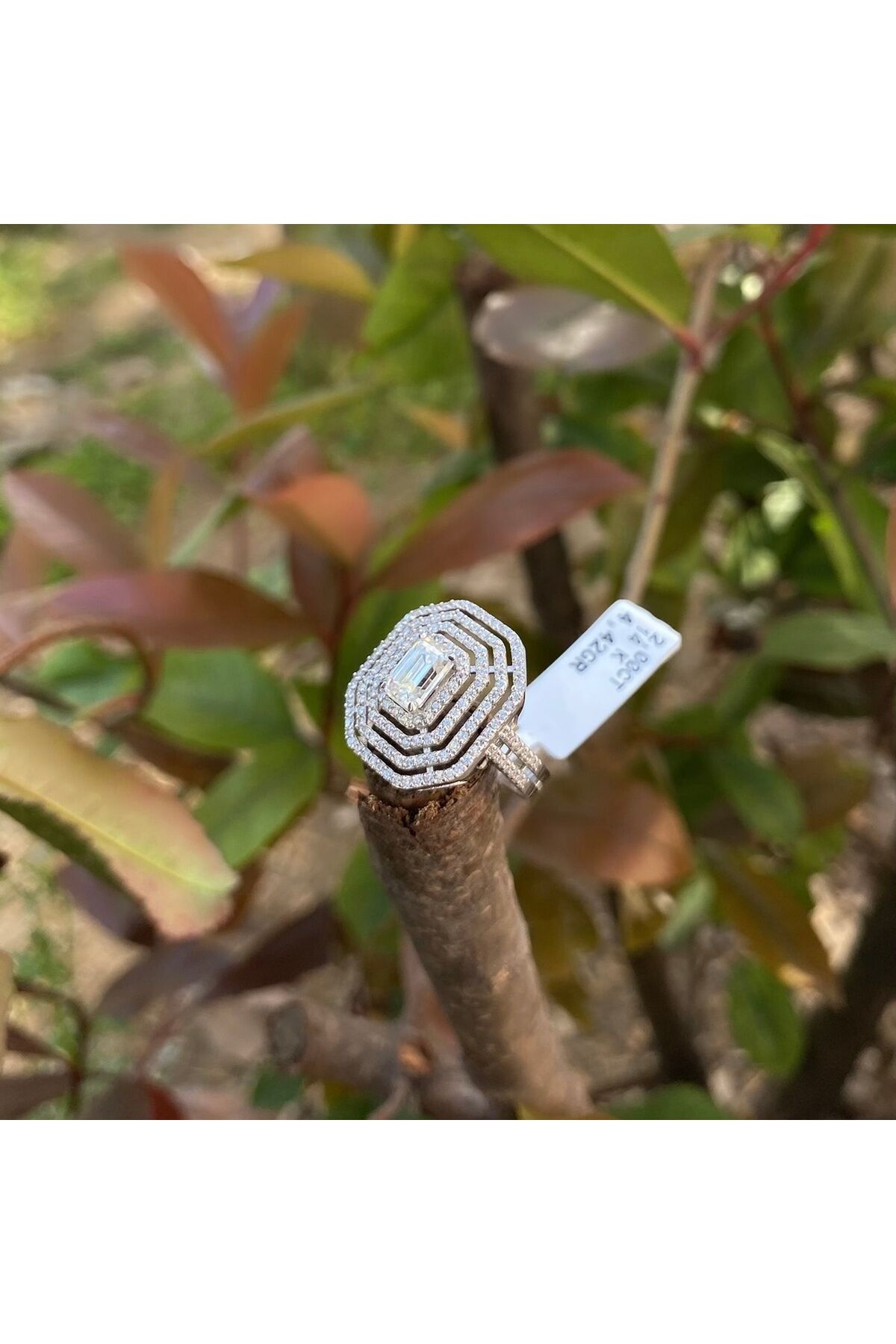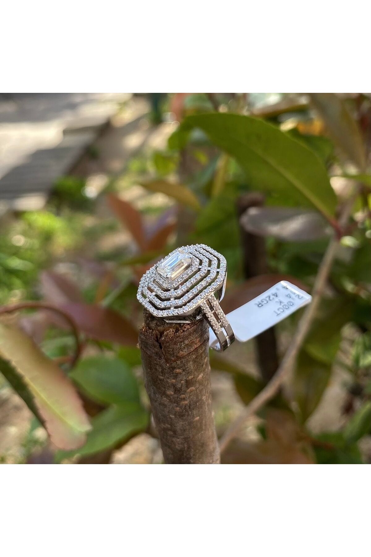 2 karat mozanit altın baget yüzük