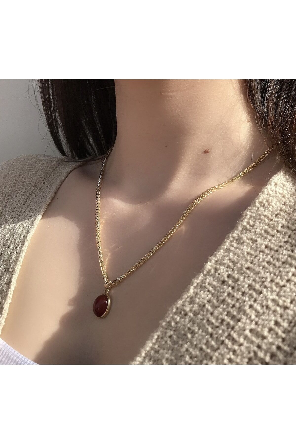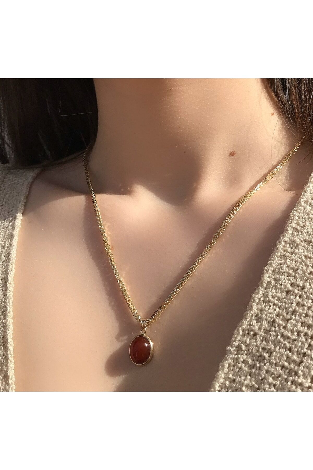 Akik Taşlı Kolye