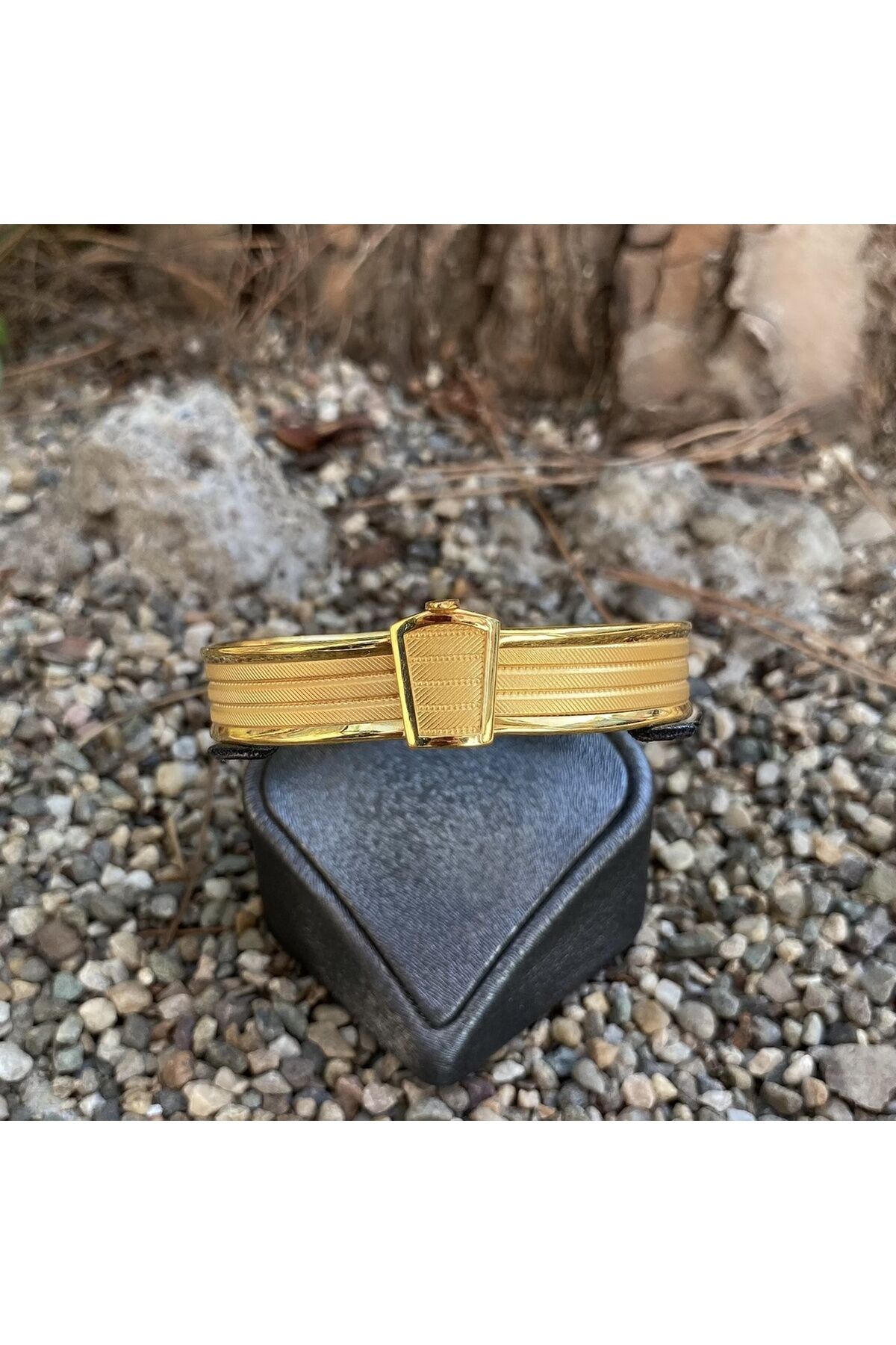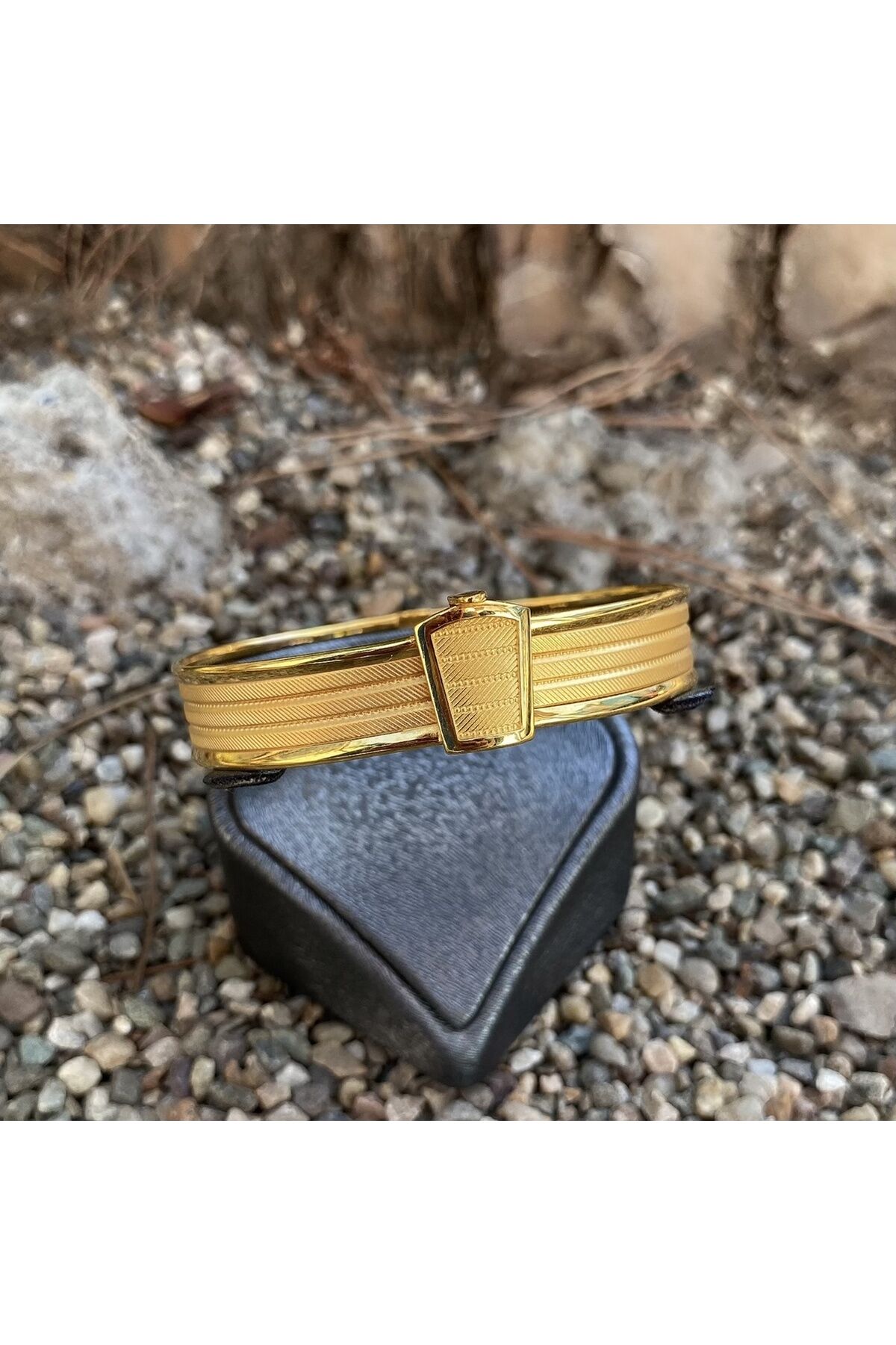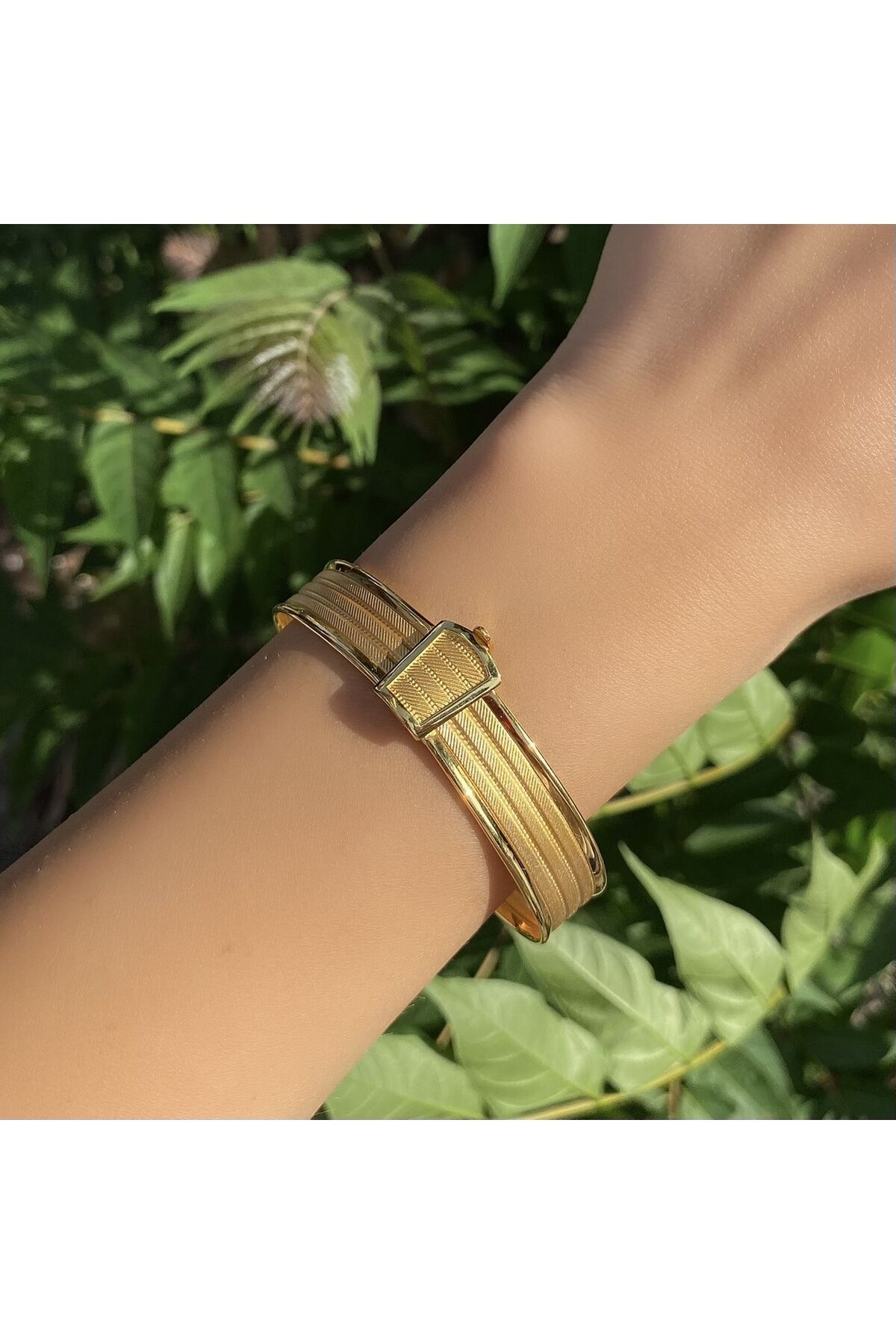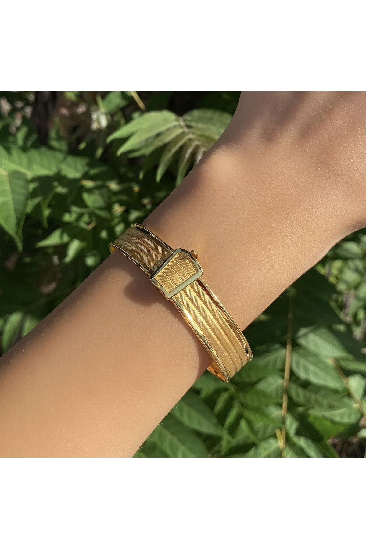 Zarif tasarımıyla dikkat çeken altın hasır kelepçe, şıklığınızı tamamlayacak bir aksesuar seçeneği sunar; Yüksek kaliteli altın materyali sayesinde uzun ömürlü kullanım ve parlak bir görünüm sağlar; Her tür kıyafetle uyum sağlayabilen bu bileklik, günlük kullanımın yanı sıra özel günlerde de tercih edilebilir;
