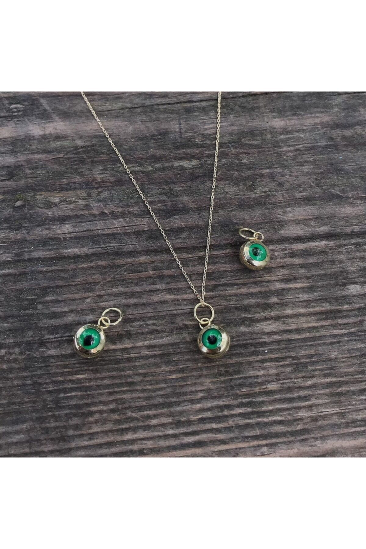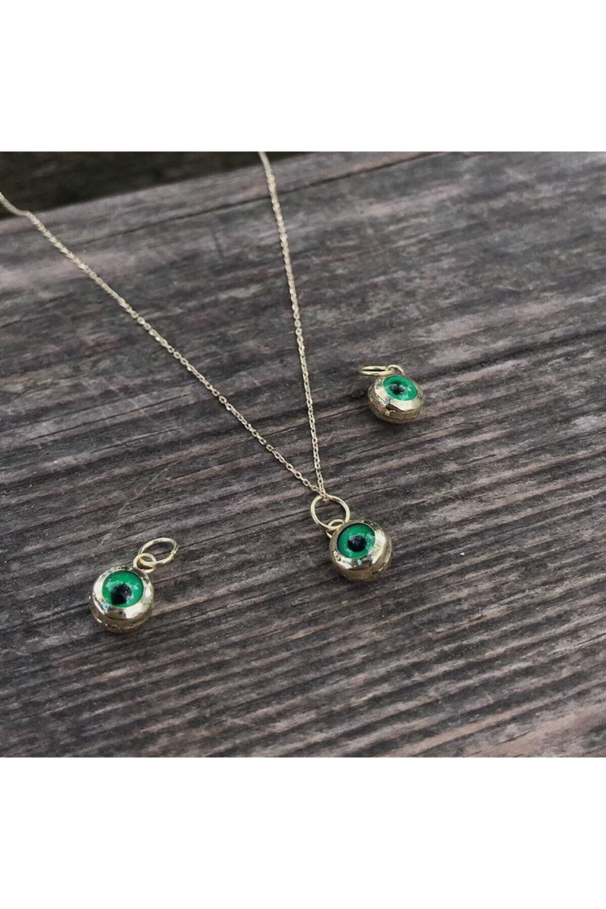 Altın Nazar Boncuğu Kolye Ucu Yeşil