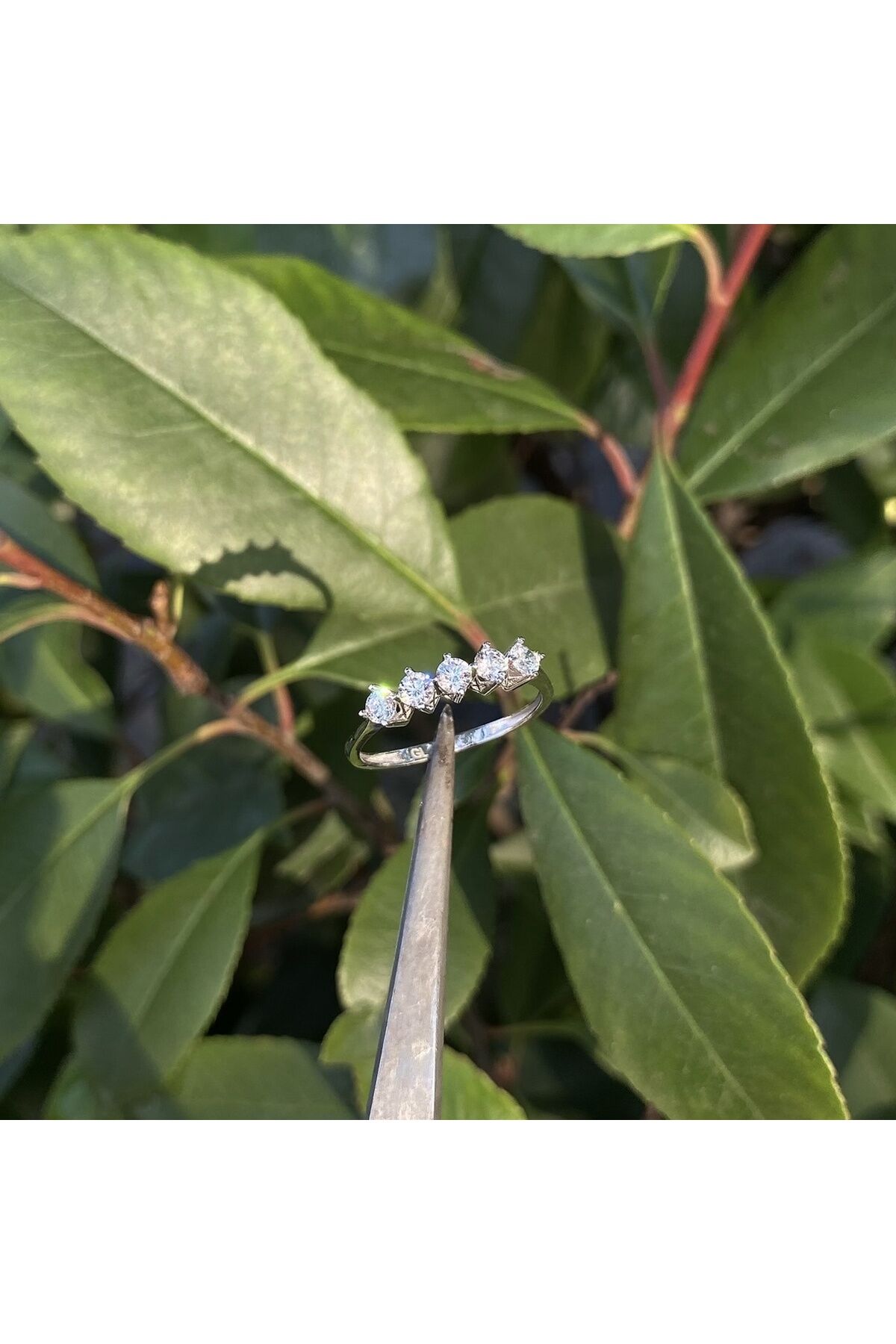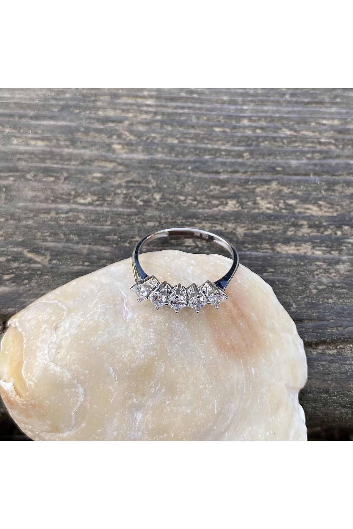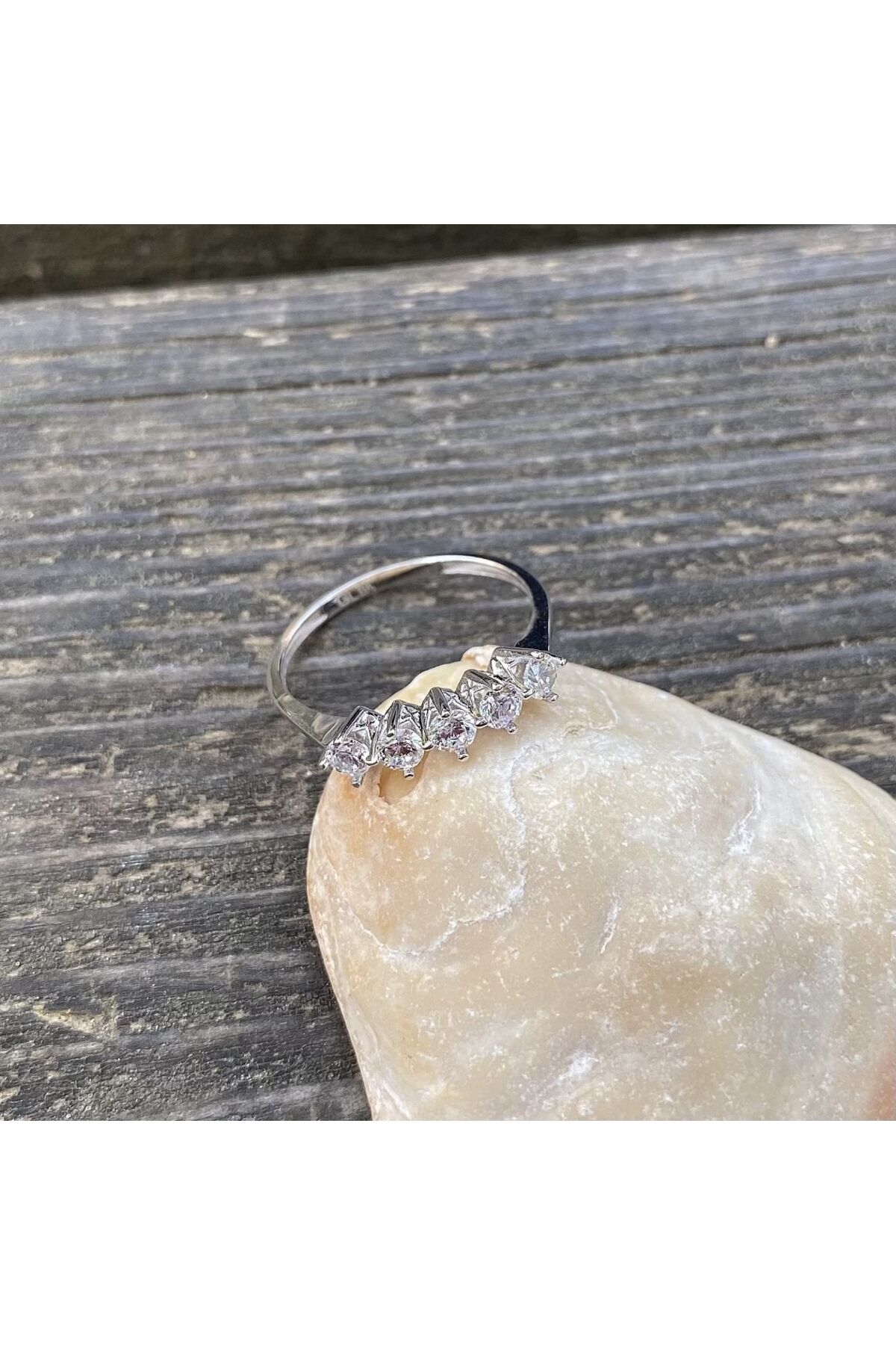 Beyaz altın beştaş yüzük