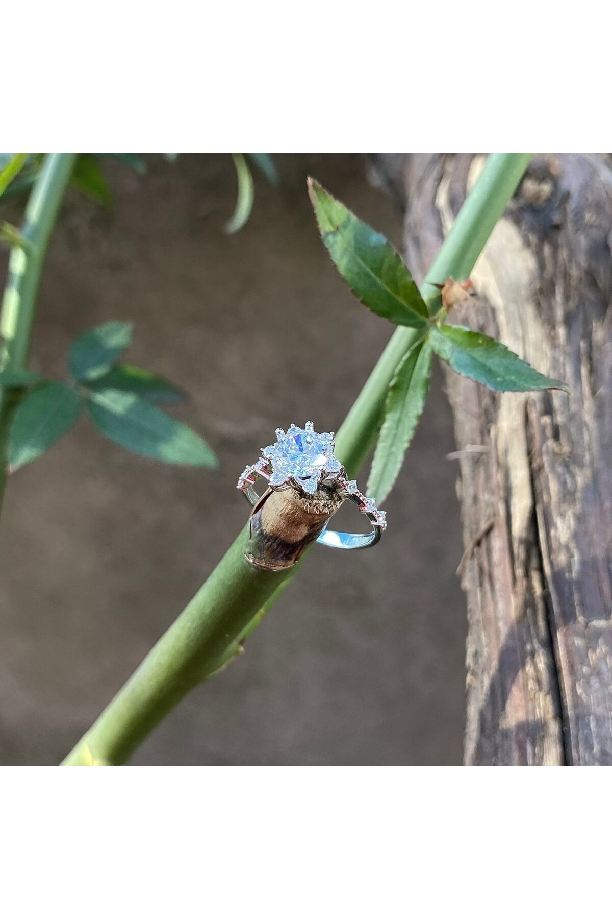 Beyaz altın lotus yüzük
