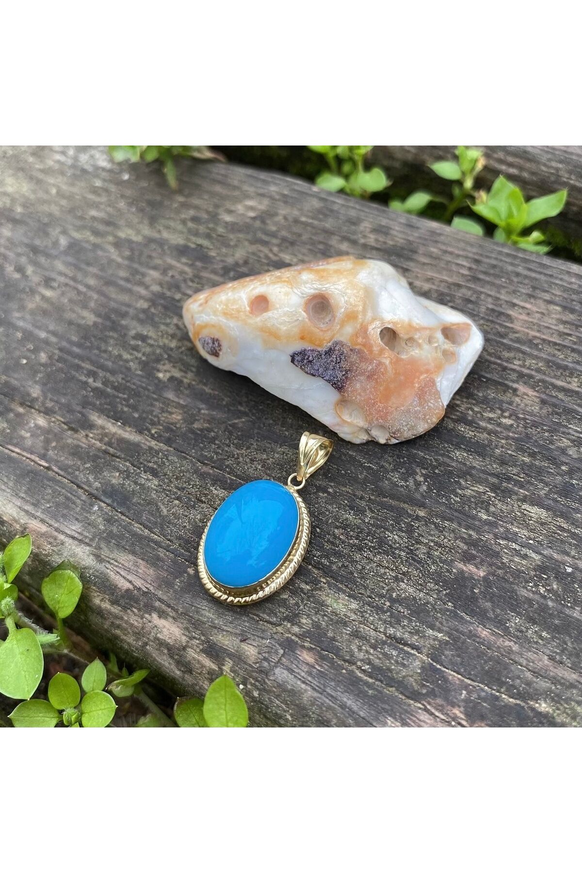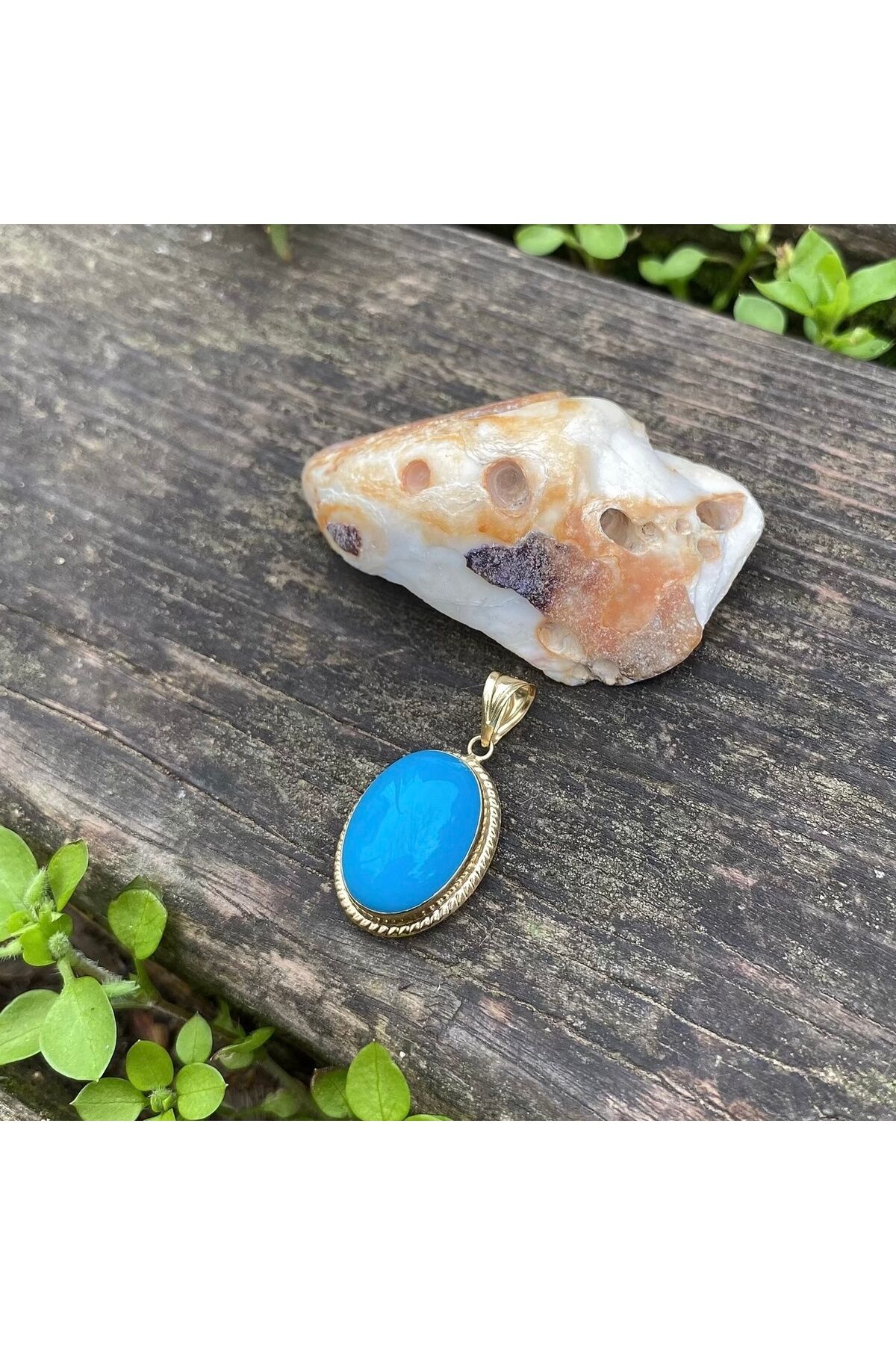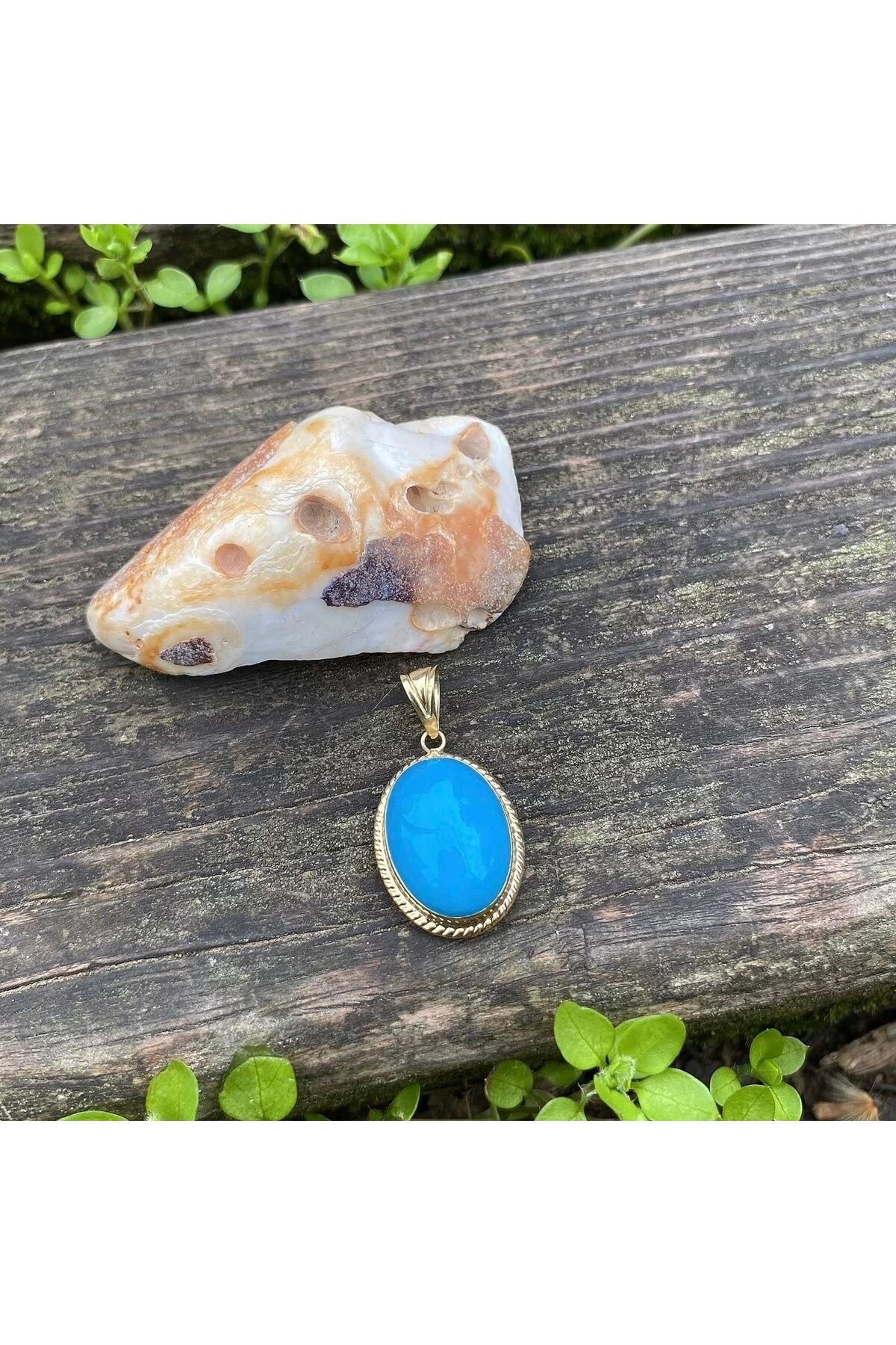 Firuze altın kolye ucu