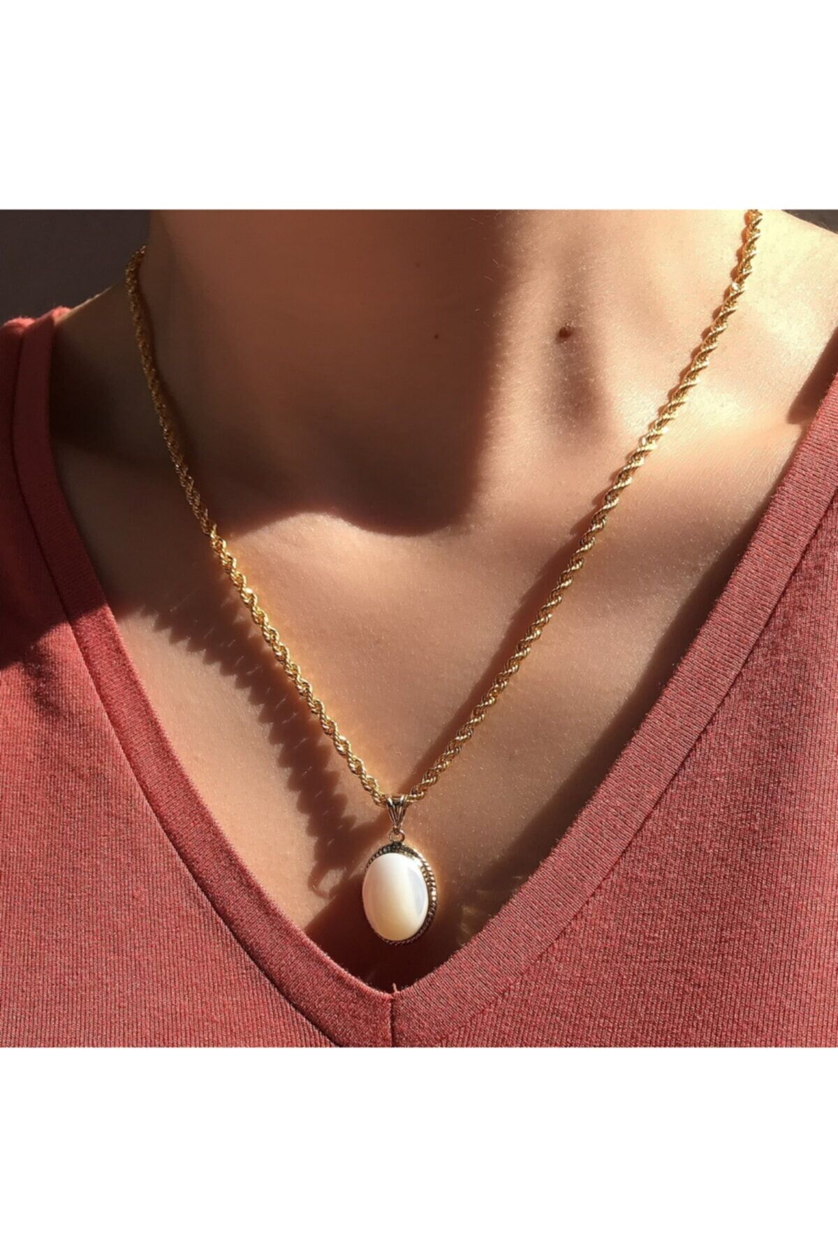 Saf altın malzemesiyle üretilmiş, uzun ömürlü ve kaliteli bir aksesuar deneyimi sunar; Doğal taş kullanımı sayesinde her kolye benzersiz ve otantik bir görünüm kazanır; Sedef rengi detaylarıyla dikkat çeken tasarım, şıklığınızı tamamlayacak zarif bir dokunuş sağlar;